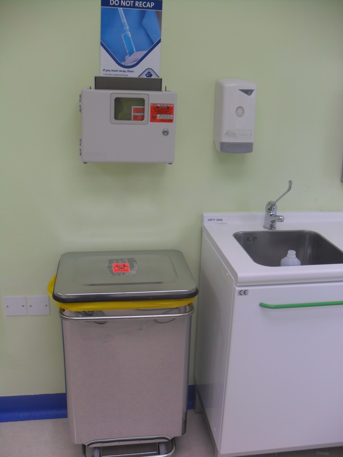All metals,sharps, and glass wastes go to this punctured resistant containers. All contaminated materials go to the biohazard labeled yellow bag under for incineration. How I wish this were done in Manila. Now I pity those who live in the Smoky Mountain or any dumpsite.:)